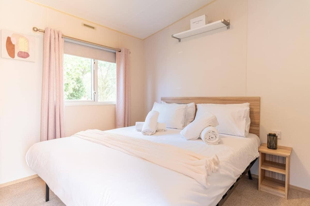 Moving on into the generously sized living space, you’ll find the aforementioned sofa in the lounge section which is no doubt where the family will be spending most of their time. Also included here is a fireplace and space for a TV so that you don’t have to miss out on your favourite programmes when holidaying. Also located here is the cosy dining space where you can enjoy meals together as a family.