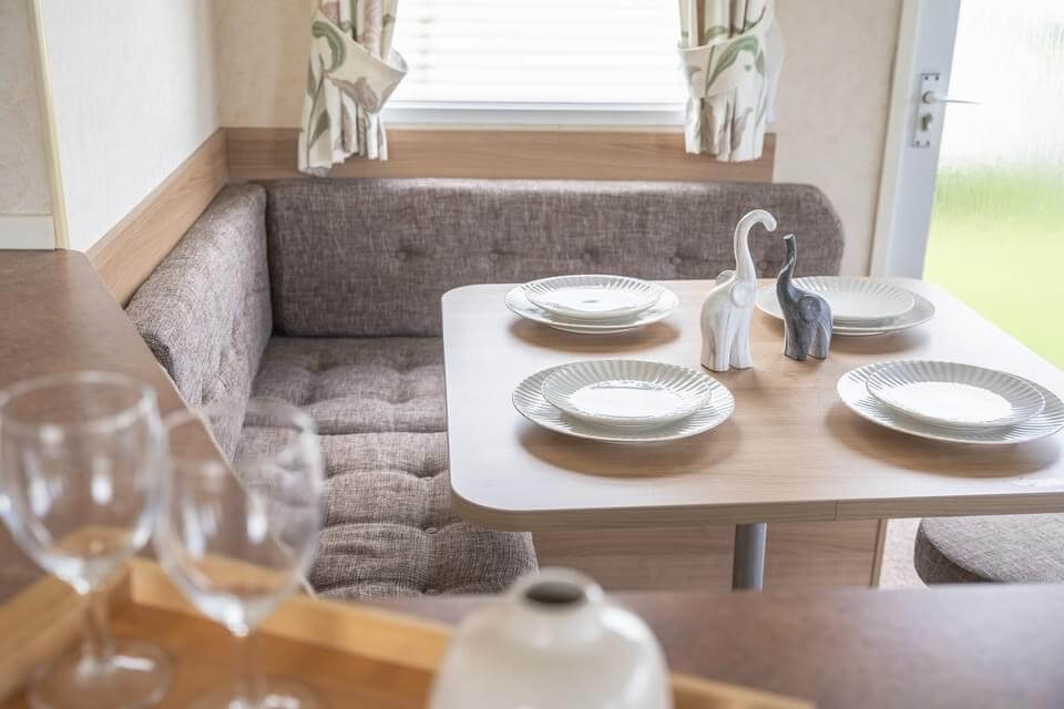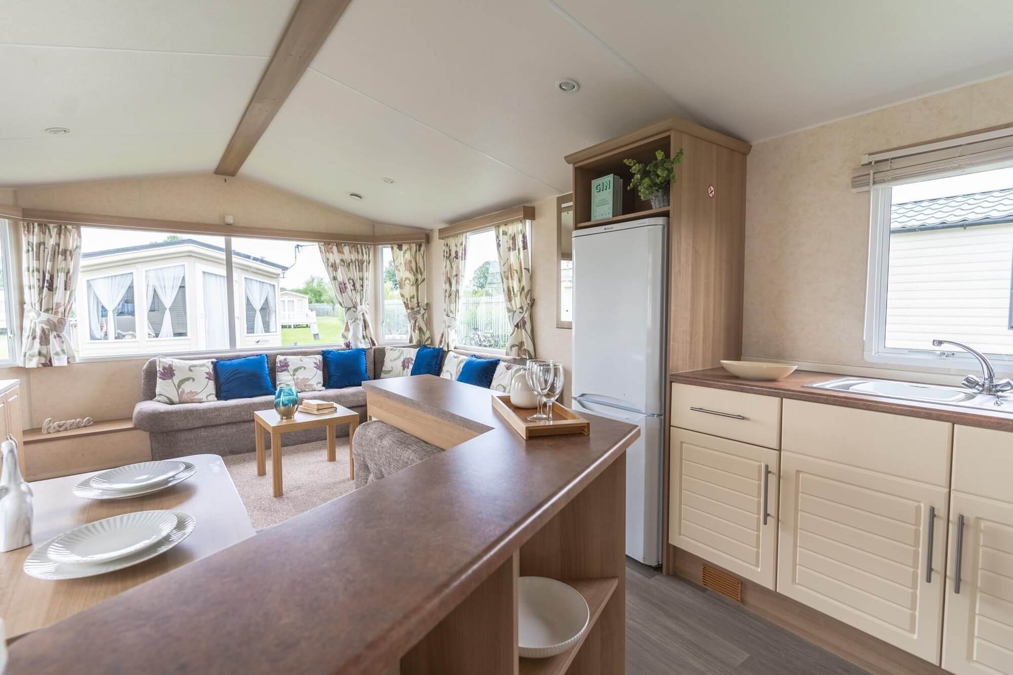 The Atlas Chorus is a must have deal on caravans in North Wales. The spacious open plan living area offers a beautiful wrap around seating area with a modern colour scheme and feel.