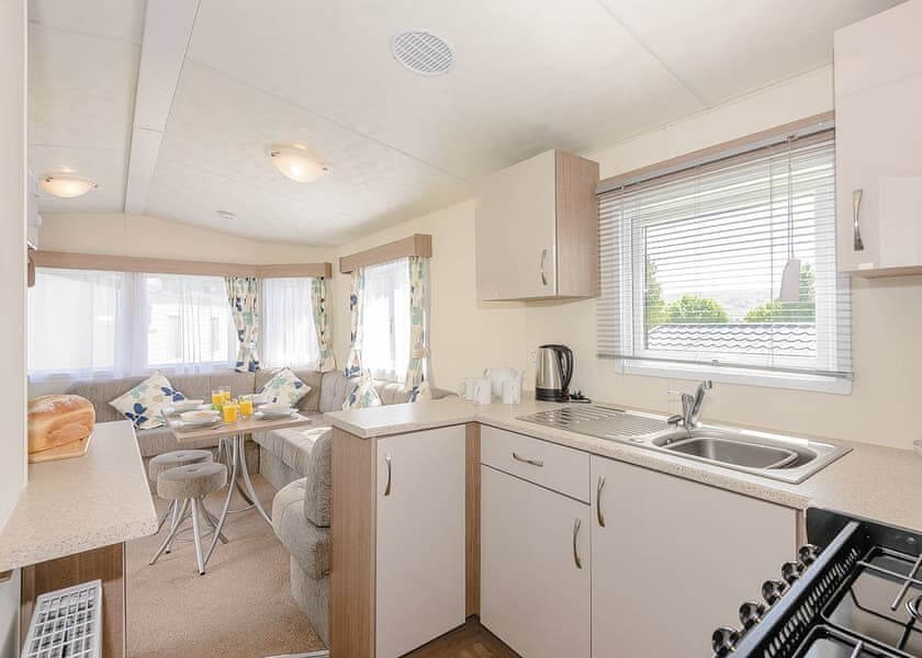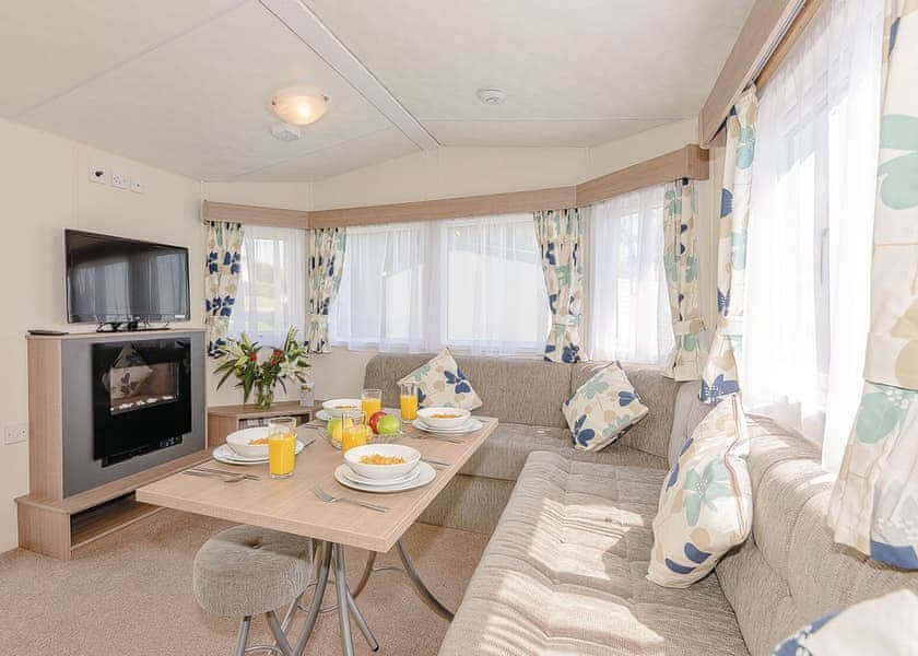 Our Bala caravan is the ideal place to retreat to after a day out, with the accommodation featuring a fully equipped kitchen where you will find everything that you need for self catering. Located in the open plan living space alongside the kitchen and dining area is a comfortable lounge section where you can catch up with your favourite TV programmes in front of a warming feature fireplace. Complimentary WiFi is provided to all of our guests too, ensuring that all of your entertainment needs are catered for.