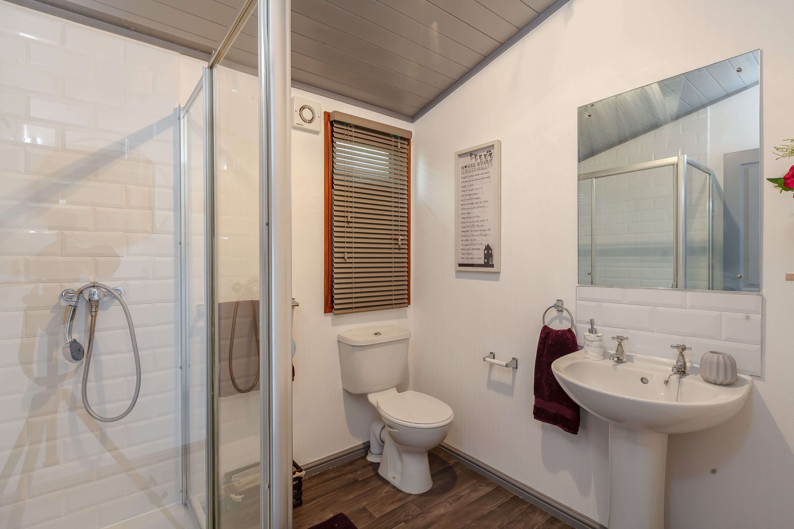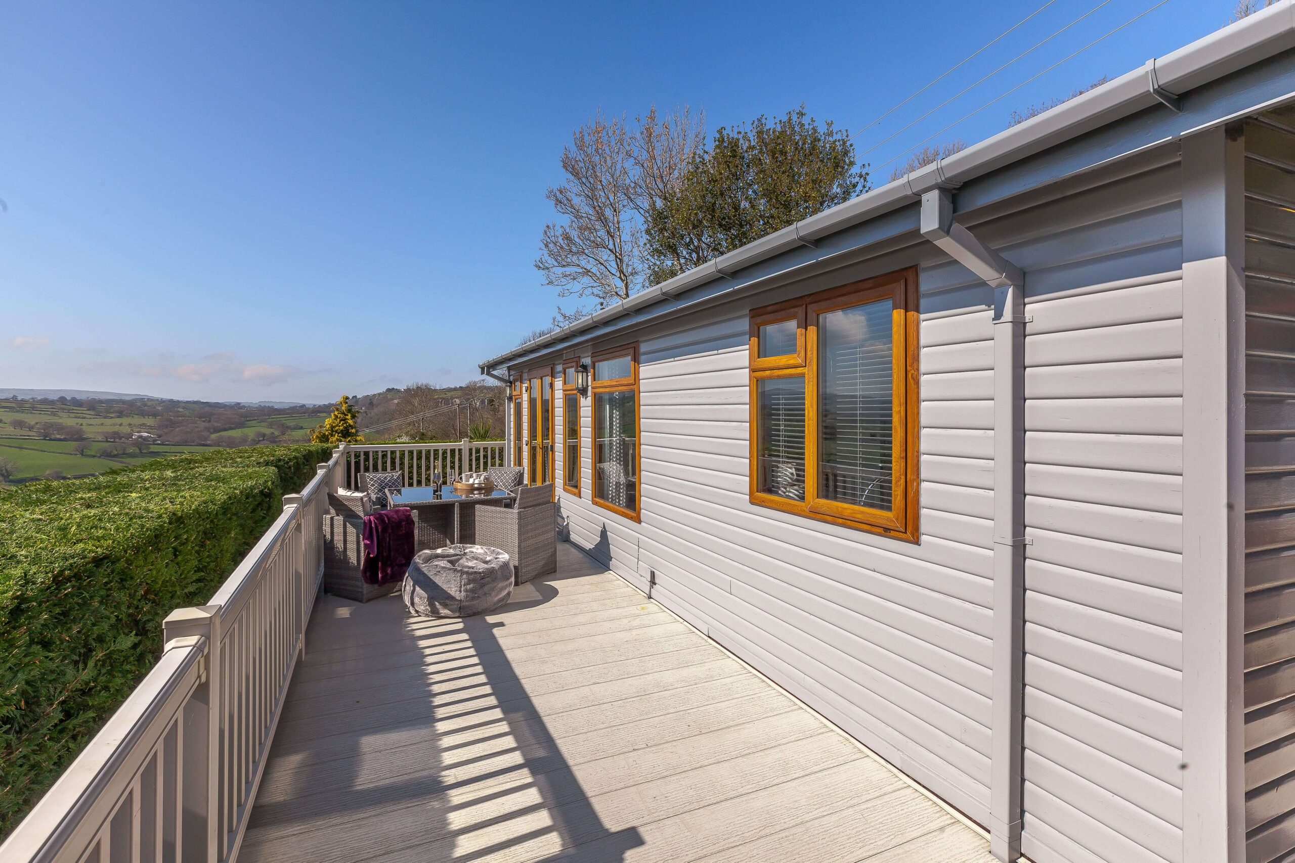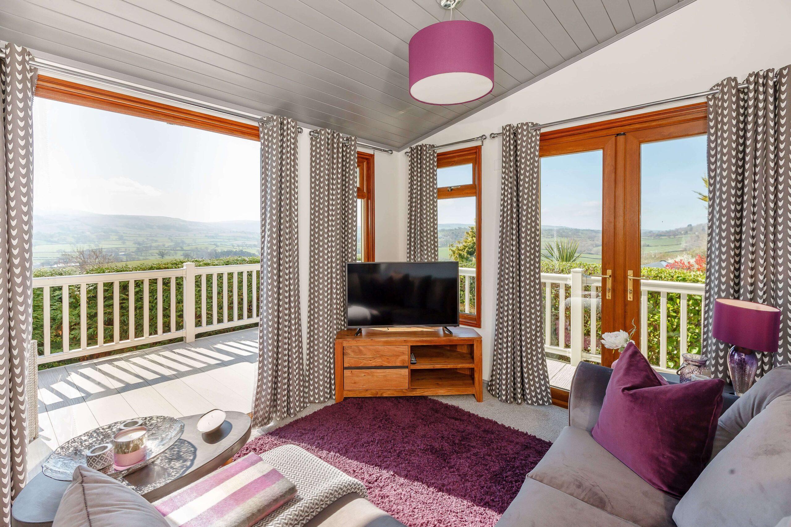 Also located in the living space is a comfortable sofa and flat screen TV in the lounge; effectively everything you will need for a romantic movie night in. The French patio doors permit plenty of natural light to radiate into the living area and lead out onto your private decking area which boasts spectacular panoramic views of the Clwydian hills. In addition to your private hot tub, you will also find quality outdoor furniture here too in case you care to dine alfresco.