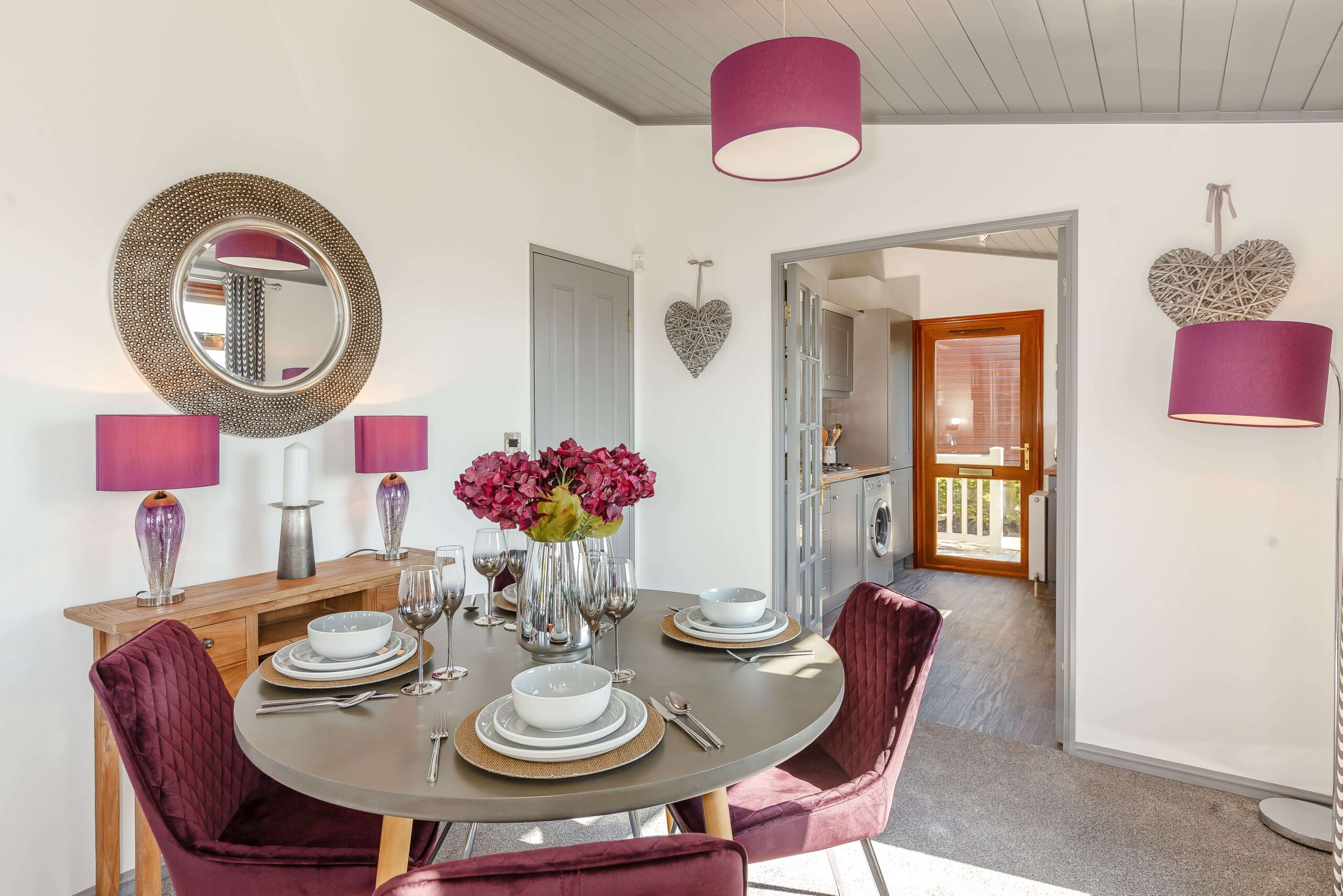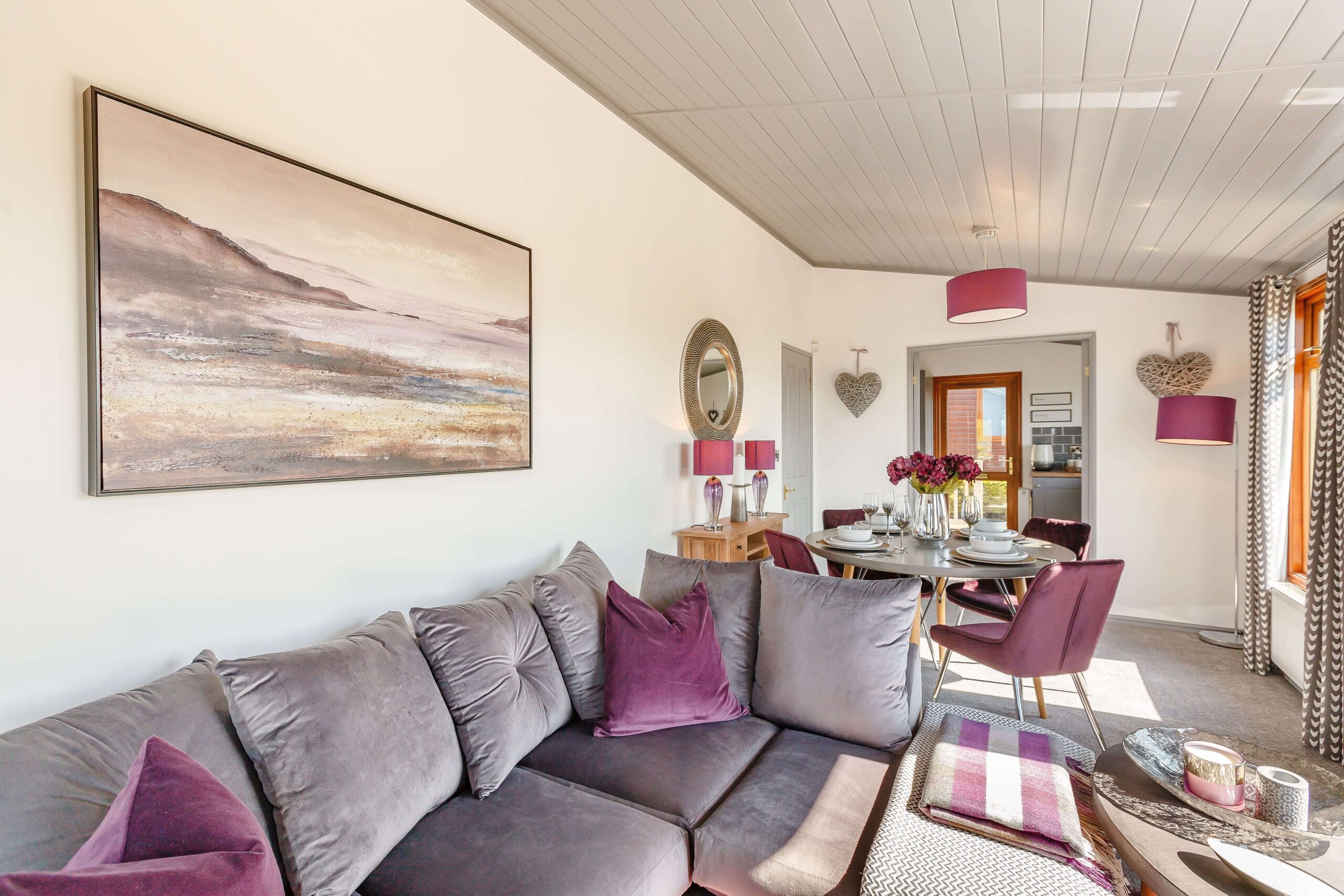 However, the luxuries which are afforded with the Cliff Top Lodge don’t stop at the patio doors. The inside of the lodge benefits from personalised styling by an respected interior designer who has created a warming and welcoming ambience in which to enjoy luxury Abergele lodge holidays. This is very much in evidence throughout the open plan living space where you will find a fully equipped kitchen with everything that you will need to cook romantic meals.