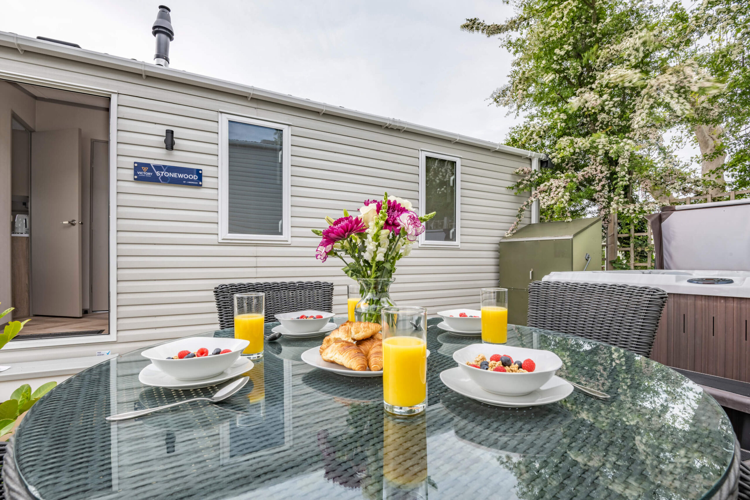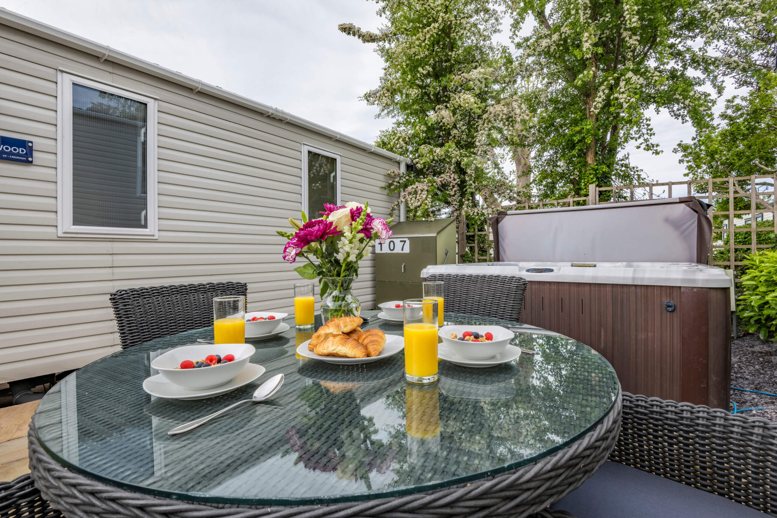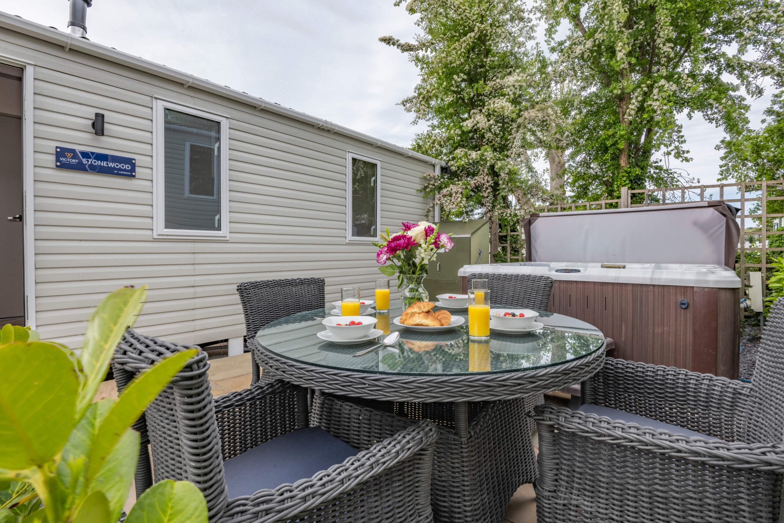 You can opt to eat in the comfortable dining space afforded or on your own patio which comes with quality outdoor dining furniture. Of course, the pierre de resistance of this section of the holiday home is your very own private hot tub where you can sit back amidst the bubbles and savour the stunning Clwydian countryside surrounding you. You will also be provided with extra towels so that you can make the most of this feature or even try out our on-site spa complex where you will enjoy complimentary access to our sauna, steam room and jacuzzi.