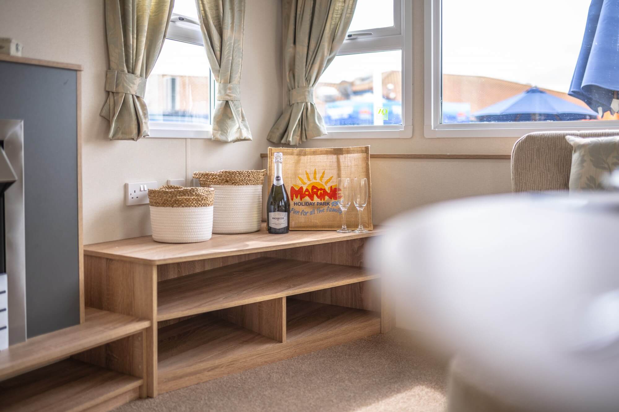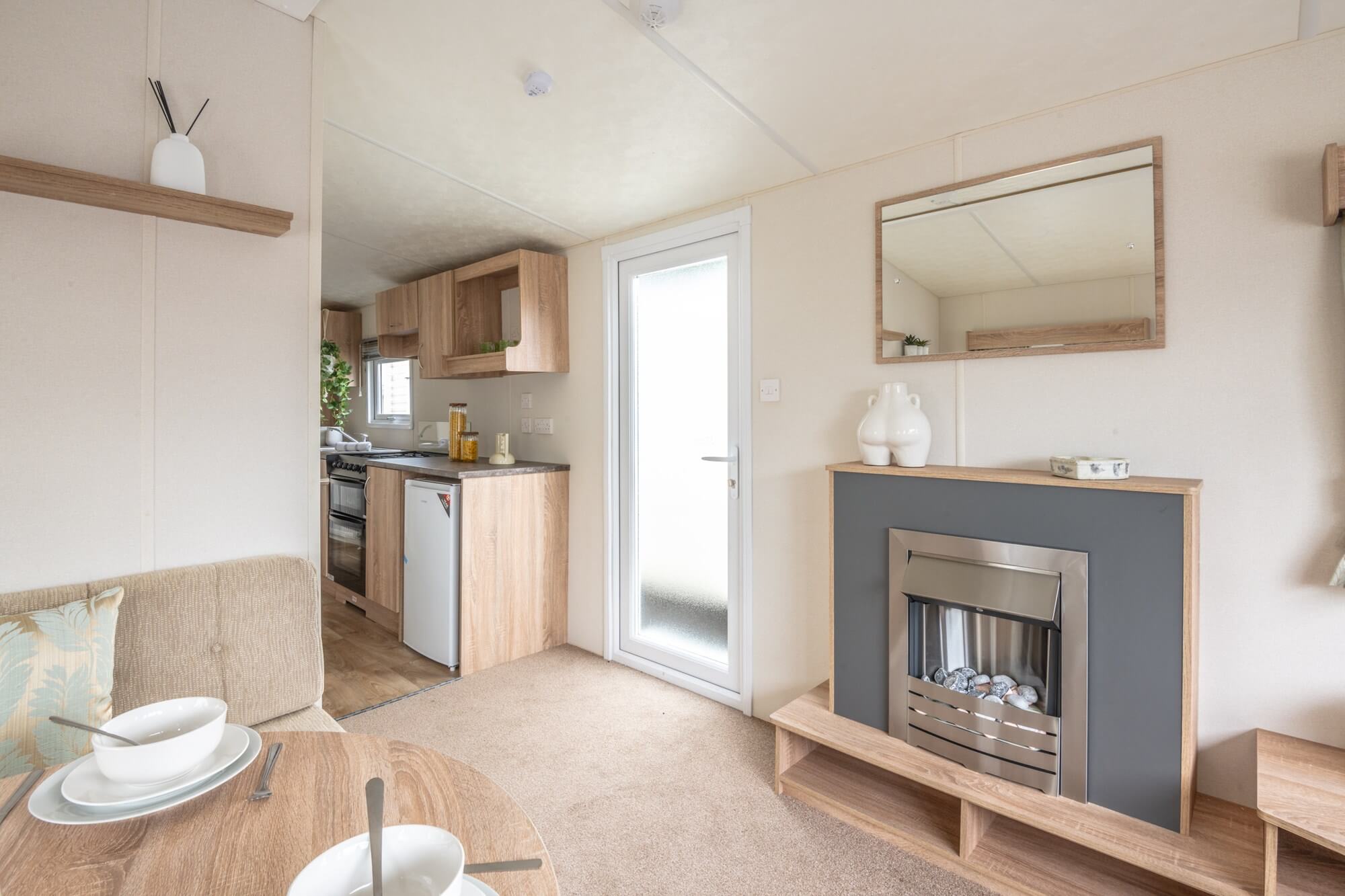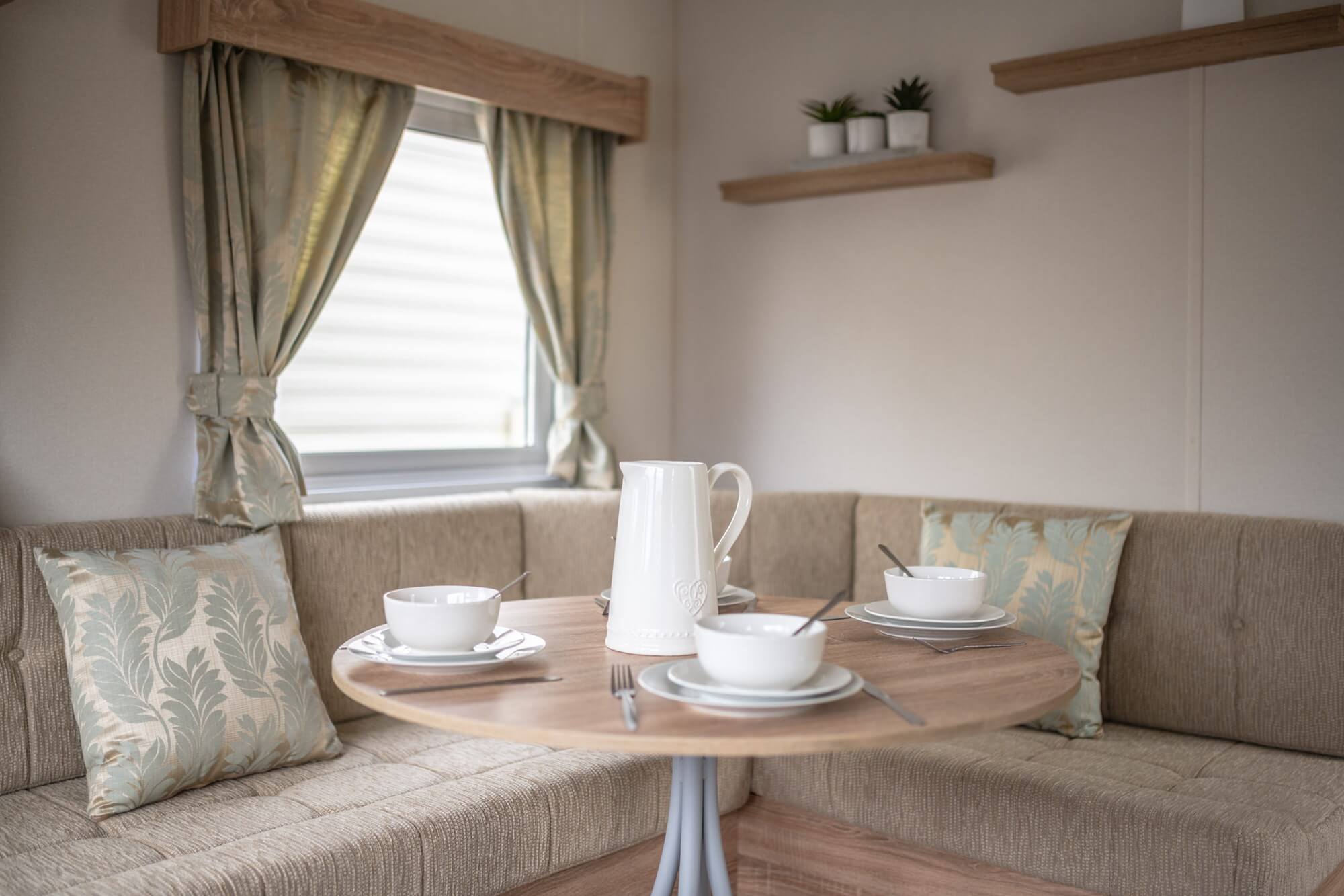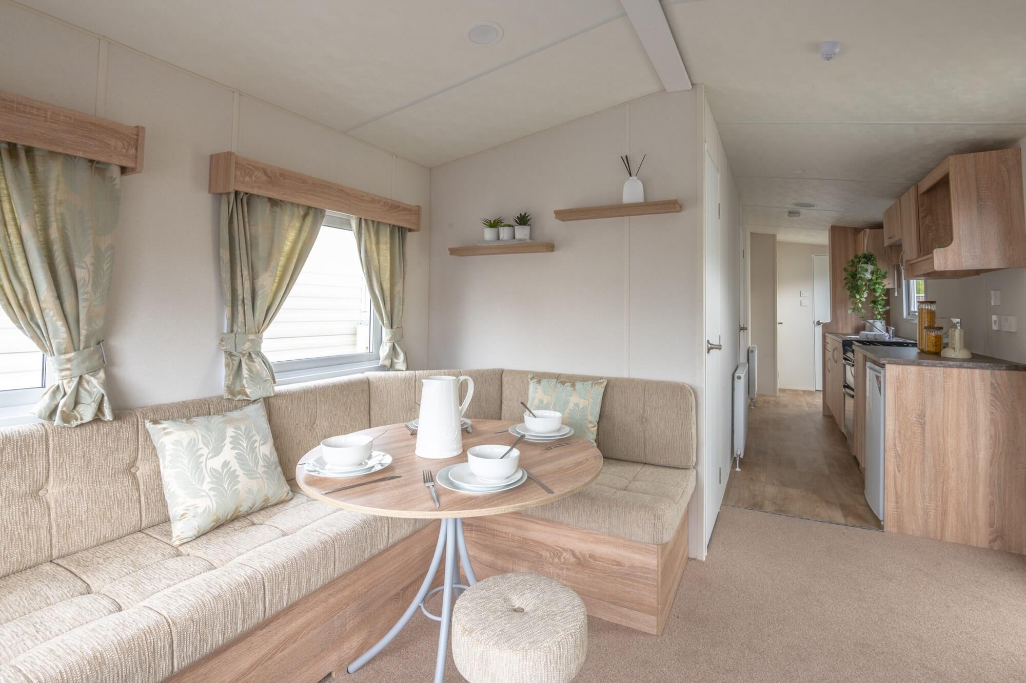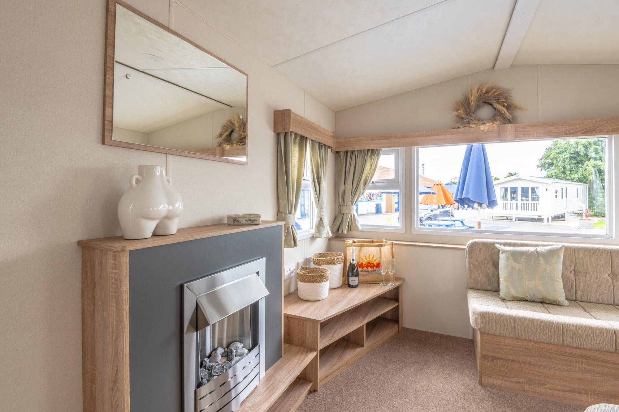 After exploring these many visitor attractions, you can then head back to your seaside retreat and enjoy the plethora of on-site facilities, entertainment and childrens activities which are available at Marine Holiday Park.. Your holiday home will be fully equipped for self catering with an integrated gallery kitchen with a cooker, fridge, freezer and ample storage space for storing all of your pots, pans and tableware. You can enjoy meals on the cosy dining space provided or in the lounge area which has space for a TV and features a comfortable wrap around sofa. This also doubles as a fold out bed which provides additional sleeping space for up to 2 guests for whenever you are entertaining.