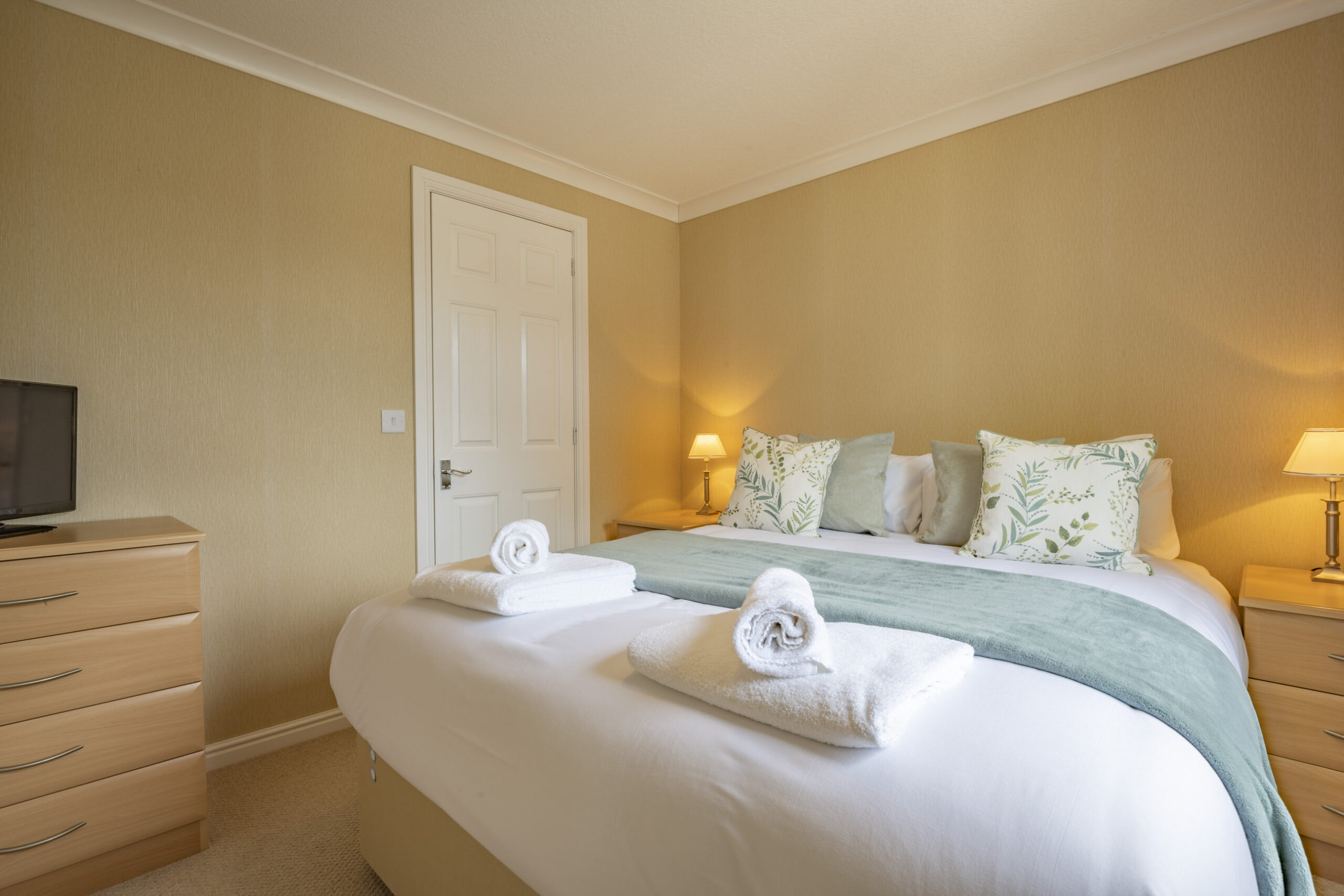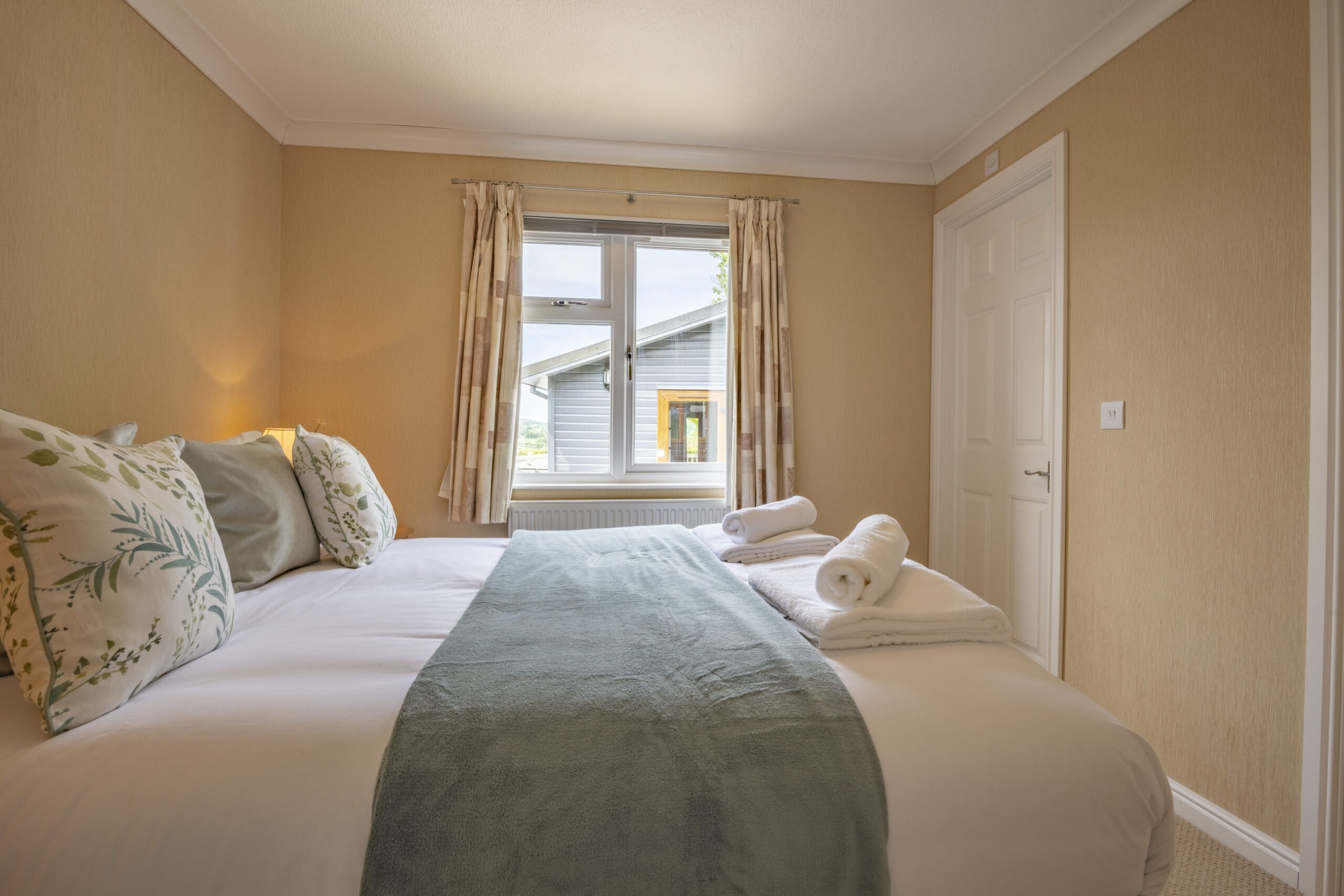 The perfect lodge for a couple’s retreat. This beautiful lodge welcomes you in with an open-plan living, kitchen and dining area. The kitchen is equipped with all you would need for a self-catering break away with the added bonus of an integrated dishwasher and a separate undercounter fridge and freezer.