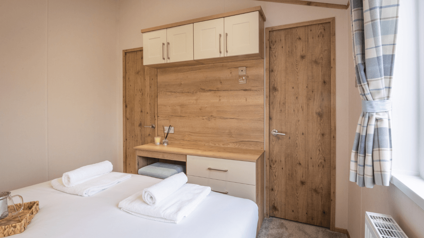 All three bedrooms adhere to a similar styling, with light oak furnishings and plenty of space. You will no doubt begin to relish the prospect of snuggling up in your new holiday home bed where the surrounding peaceful North Wales countryside will provide you with everything you need for a great night of sleep.