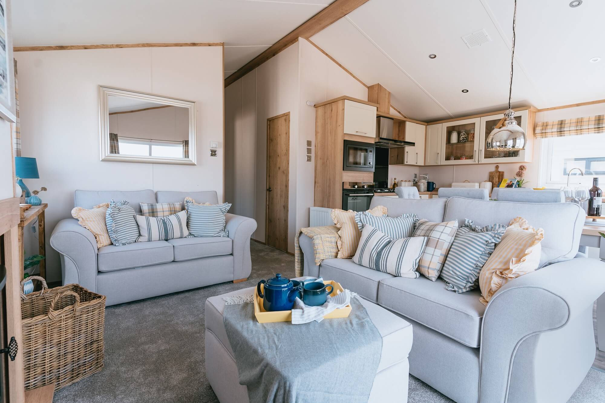The Oakland Lodge is a high quality and high specification twin unit with a relaxing colour scheme. The open plan living area is spacious with comfy sofas and fresh colours have been used to give a light and airy feel.