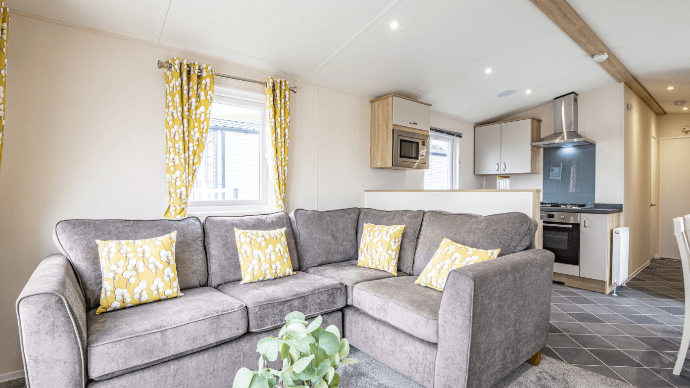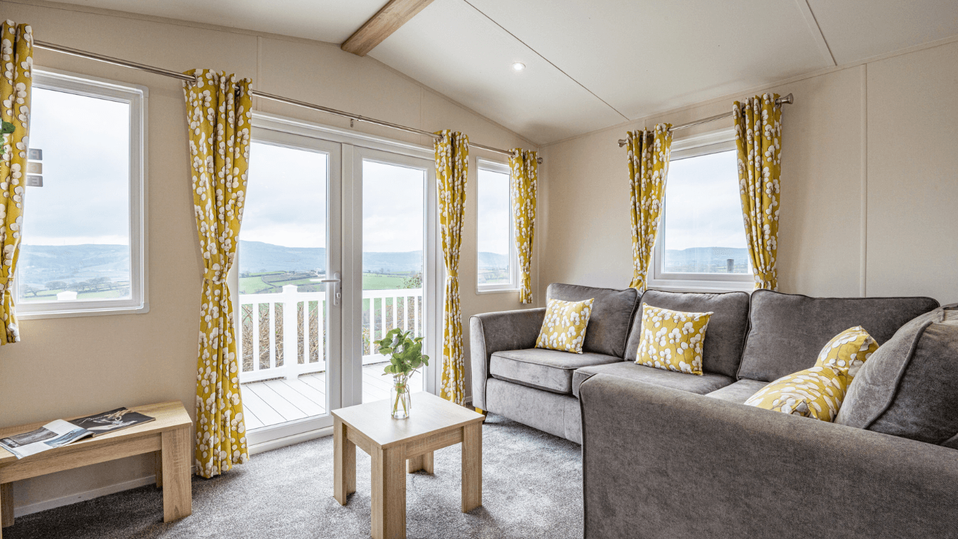 Go through these patio doors and you will find yourself on your brand new decking area, which comes as part of the package when you purchase this luxurious Love Popular caravan. In the winter months of course, you may prefer to enjoy these views from inside your holiday home, which will remain warm and cosy in any season thanks to the double glazing and central heating.