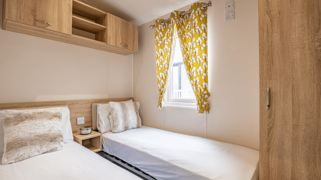 This particular Love Popular has two bedrooms made up of a double and twin room, both of which are designed for comfort. You’ll have plenty of space to store your holiday wardrobe too alongside any other accessories that you will need whilst staying away from home.